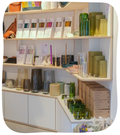 Nos deux boutiques sont des trésors à explorer : objets déco, bijoux, cosmétiques, accessoires, idées cadeaux… et toute une équipe qui adore partager ses coups de cœur. On papote, on conseille, on rit, on s’inspire… bref, on vous attend !