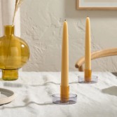 Un bougeoir en verre qui joue avec la lumière et la couleur. Il est soufflé à la main en verre borosilicate de laboratoire, pour un rendu limpide et raffiné. Chaque pièce est composée de deux teintes superposées soigneusement choisies, qui dialoguent dès que la flamme s’allume. Pensé pour les bougies classiques (bougie dîner), il trouve sa place aussi bien sur une table, une étagère ou une console. Un très bel objet décoratif, même lorsque la bougie est éteinte.