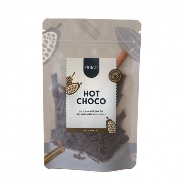 Quand le froid s’installe, rien de tel qu’un verre de chocolat chaud qui réchauffe le corps et le cœur. Le pouchbag Chocolat Chaud de Pineut vous propose un mélange gourmand : chocolat noir riche mélangé à des épices comme la cannelle, l’anis étoilé, la cardamome et le clou de girofle. Versez le contenu dans du lait de votre choix, chauffez doucement, et savourez ce moment douillet.