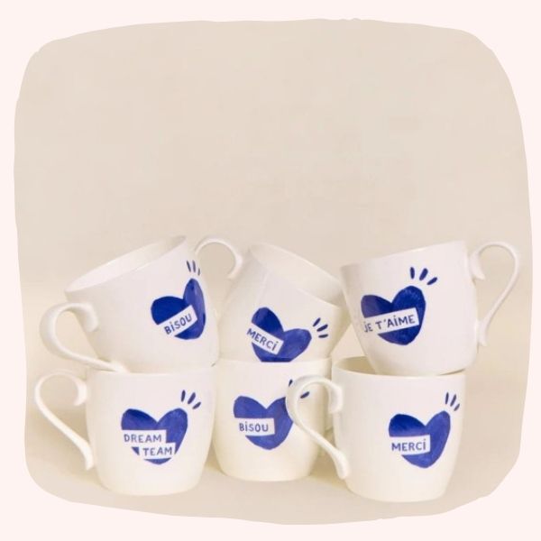 Pour les cafés du matin, les chocolats chauds du soir, et tous les “tiens, je pense à toi” entre les deux.