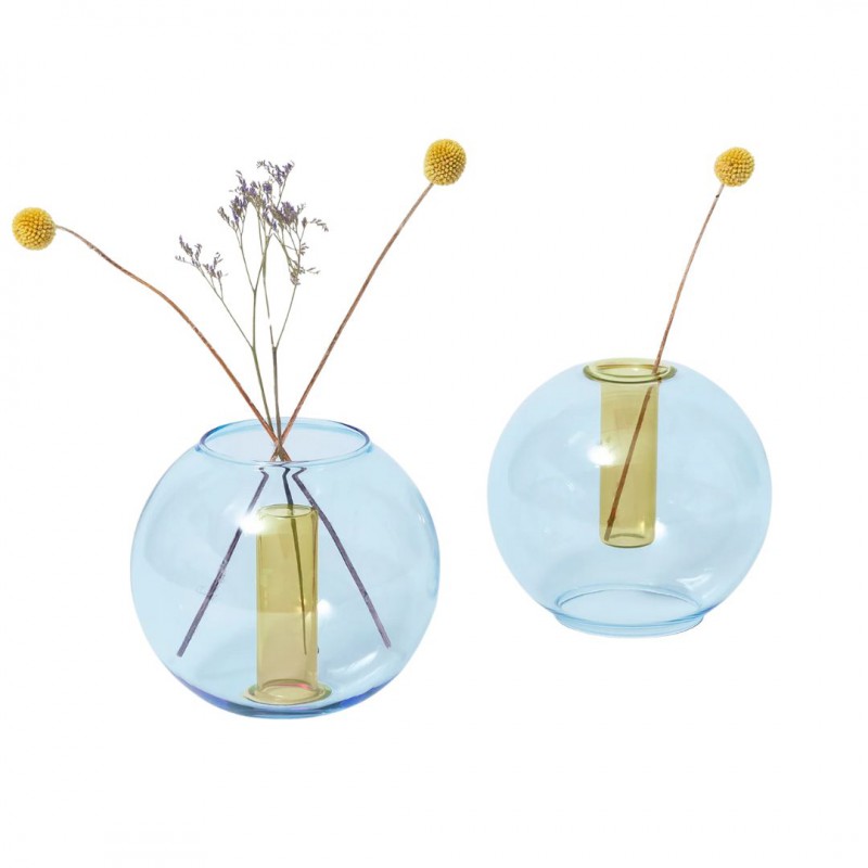 Le vase Bubble est soufflé à la main en verre borosilicate. Une version subtilement ronde qui capte la lumière et révèle les teintes dès qu'on y ajoute de l'eau. Il se prête aussi bien aux petits bouquets qu'à la mise en valeur d'une seule tige, selon l'inspiration du moment. Le jeu de couleurs superposées s'active dès que le vase est rempli, offrant un dialogue délicat de transparence et de volume. Même vide, il se suffit à lui-même comme pièce sculpturale décorative.