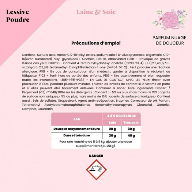 Spécialement conçue pour les textiles délicats, la Lessive Laine & Soie Pimpant nettoie sans abîmer ni feutrer les fibres. Sa formule douce, à 96 % d’ingrédients d’origine naturelle, est enrichie d’agents protecteurs pour garder souplesse et douceur. Idéale pour les pulls en cachemire, les chemisiers, ou les écharpes fragiles, elle agit à basse température et se rince facilement sans laisser de résidu.